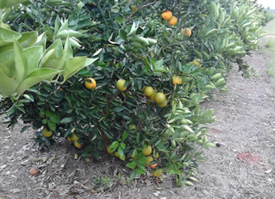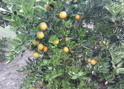 Apresenta frutos com formato oval. A casca é ligeiramente grossa, tem suco de coloração amarelo forte e adocicado.